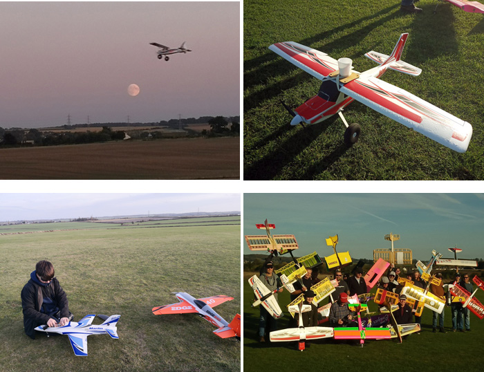 Ну и полеты на радиоуправляемых самолетах, конечно (фото справа вверху – это было соревнование пролететь на самолете, сделав несколько маневров, и не разлить воду в стакане :) . Сын даже чего-то там выиграл у взрослых дядек).