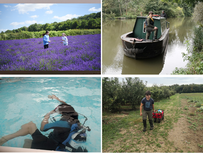 В плане путешествий-развлечений было всего по-немножку: наши мужчины практиковались управлять длинной канальной лодкой, дети попробовали понырять с аквалангом, и мы традиционно ходили на местную ферму за разными вкусностями.