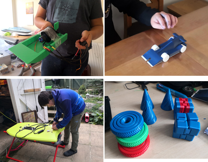 Сын устроил на дому свою лабораторию “очумелые ручки” – прикручивая двигатели к разными замысловатым конструкциям, распечатывая что-то на 3D принтере, и создавая прототип гоночной машинки для участия в межшкольных соревнованиях.