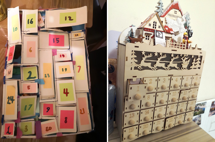 Первый раз я оказалась по другу сторону дедморозовых забот: в этом году дети сделали для меня свои адвент-календари – Ника купила на свои карманные деньги вкусняшки-ручки-заколочки, Егорыч распечатал мне математических задач “со звездочкой” на каждый день декабря, чтобы я вдруг не заскучала и мозги мои не заржавели перед новым годом: