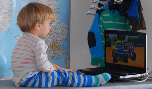 Мультики смотрит охотно, но к счастью пока не западает на них. Иногда даже сам предпочитает чтение книг мультикам. Правда, чем дальше, тем больше начинается нытье в сторону компьютера со словами “биби! туту! кака!” (перевожу: мультики про машинки, паровозики и трактора, а других мы не признаём).
