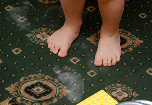 + полтора часа на уборку кухни после беспредела, который карапузы устроили из муки (Егорка провозгласил себя снежным человеком, мне даже удалось заснять следы этого йети, для научных целей :) ):