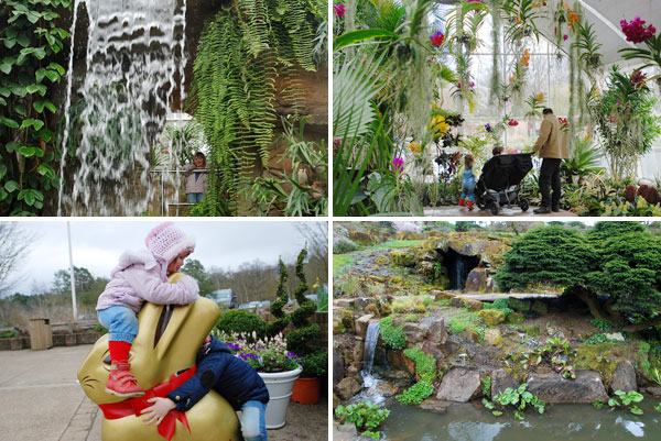Оранжерея с висящими в воздухе орхидеями и водопадом в садах Wisley, и конечно зайцы, везде зайцы – дело было на Пасху (в Англии символ Пасхи – заяц, как ни странно, приносящий яйца :) ):